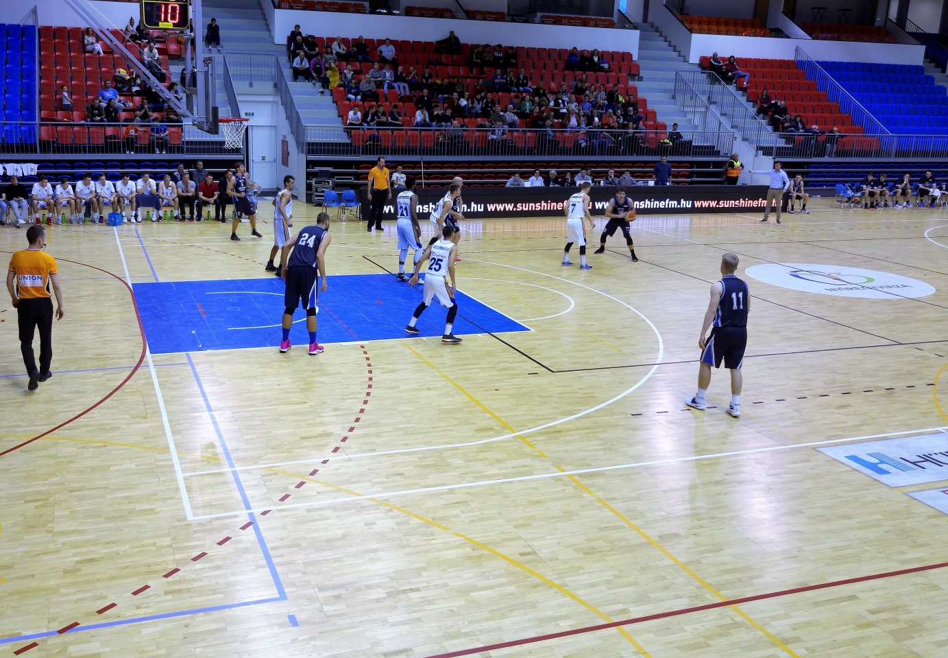 Nehezen lendültek játékba a küzdő felek, négy perc után még csak 3-3-at mutatott a nagyon szépen felújított Continental Aréna (korábban Bujtosi sportcsarnok) eredményjelzője. A következő percekben belelendült csapatunk, és különösen a végig remekül játszó Jakab Péter és az igencsak belelendült Horváth Kristóf találataival elhúztunk. Amikor Baross Kristóf hét perc játék után értékesítette Jakab gólpasszát, 5-14-re alakult az állás. Utána viszont többször is hibáztunk, miközben a hazaiak a mindenhonnan betaláló Nagy Krisztián és az amerikai légiós center, Emani Michael Gant pontjaival az etap végére egy pontra felzárkóztak (17-18).